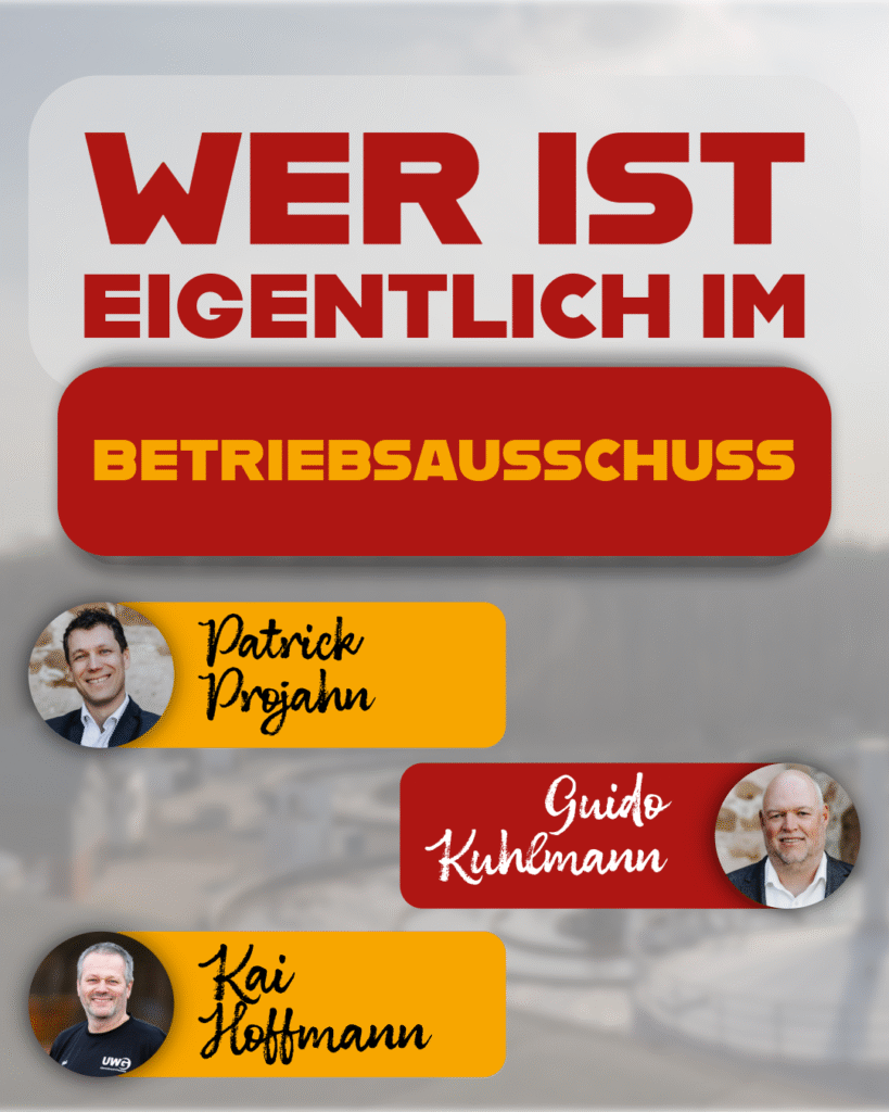 Für die UWG engagieren sich im Betriebsausschuss Patrick Projahn, Guido Kuhlmann und Kai Hoffmann – gemeinsam setzen sie sich dafür ein, dass kommunale Aufgaben zuverlässig und bürgernah umgesetzt werden.